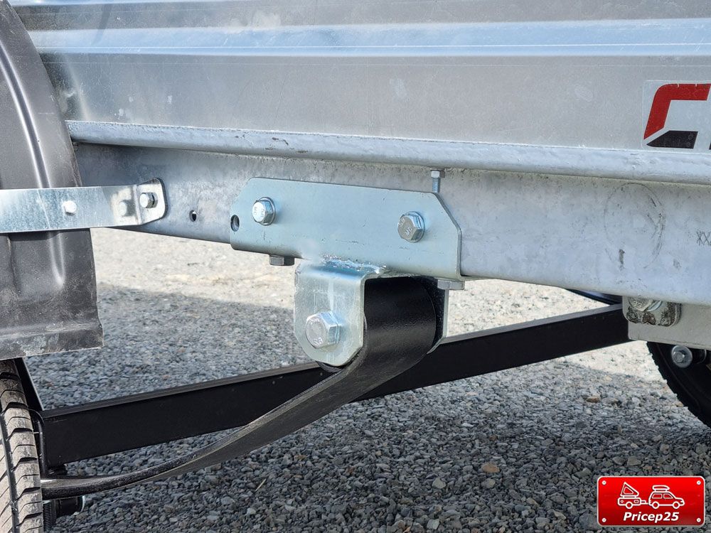 Дышло крепится к раме на болтовые соединения, таким образом в конструкции прицепа имеется функция опрокидывания кузова (самосвальная система), обеспечивающая простоту погрузки колесной техники.