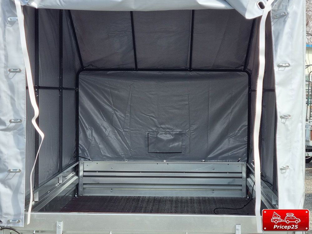 Высота более чем оптимальна как для перевозки мототехники, так и для использования прицепа в качестве палатки.