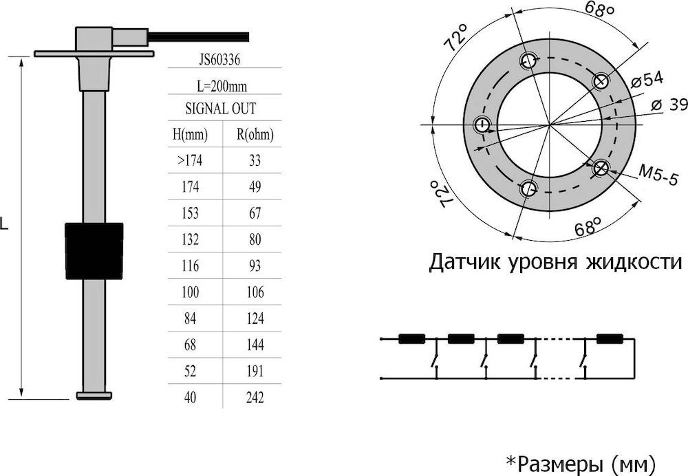 Датчик уровня 200 мм, 240-33 Ом, S5, Marine Rocket