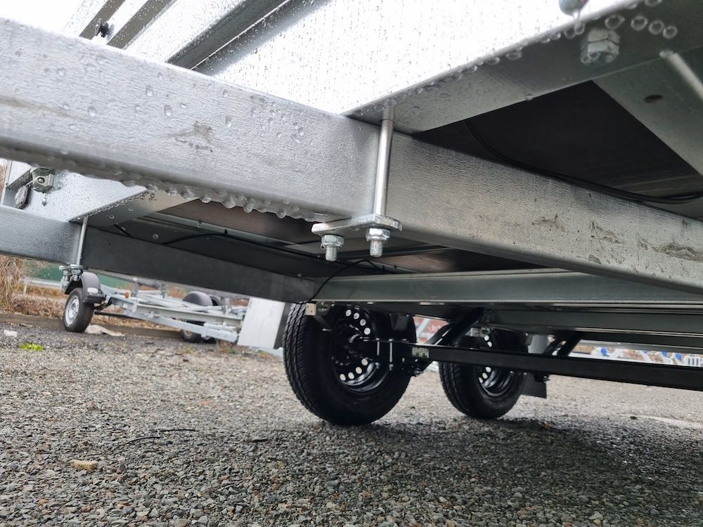 ● Антикоррозийное покрытие горячим цинкованием существенно эффективнее цинкового напыления или краски. Оно создаёт надёжную защиту от коррозии как внешних поверхностей, так и внутренних полостей конструкции, значительно продлевая срок службы прицепа.