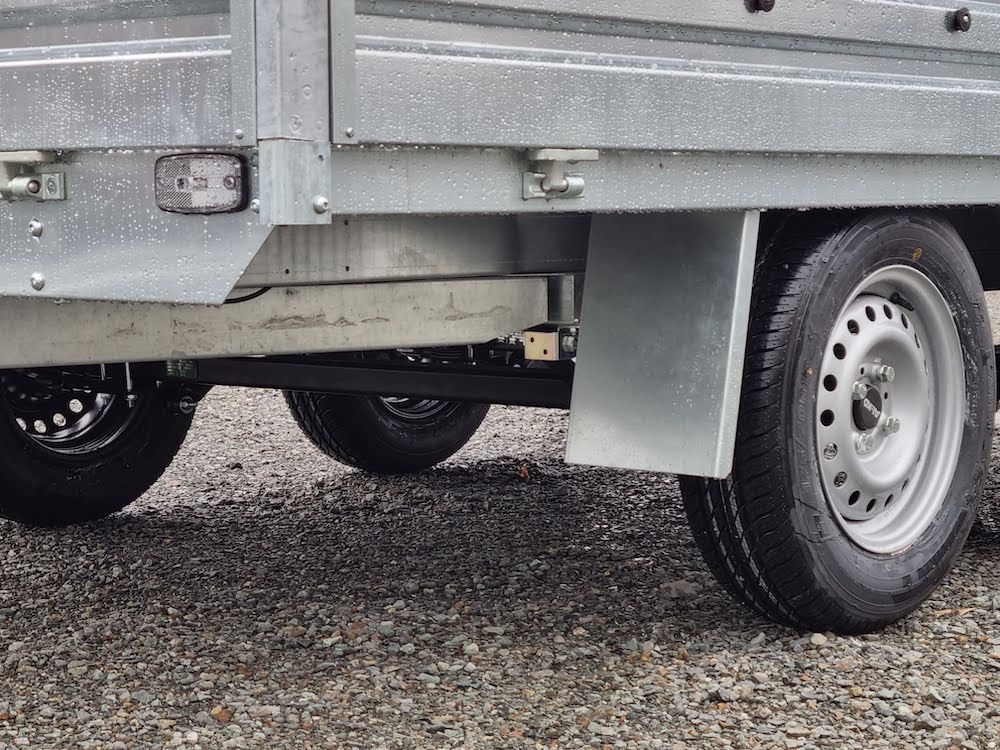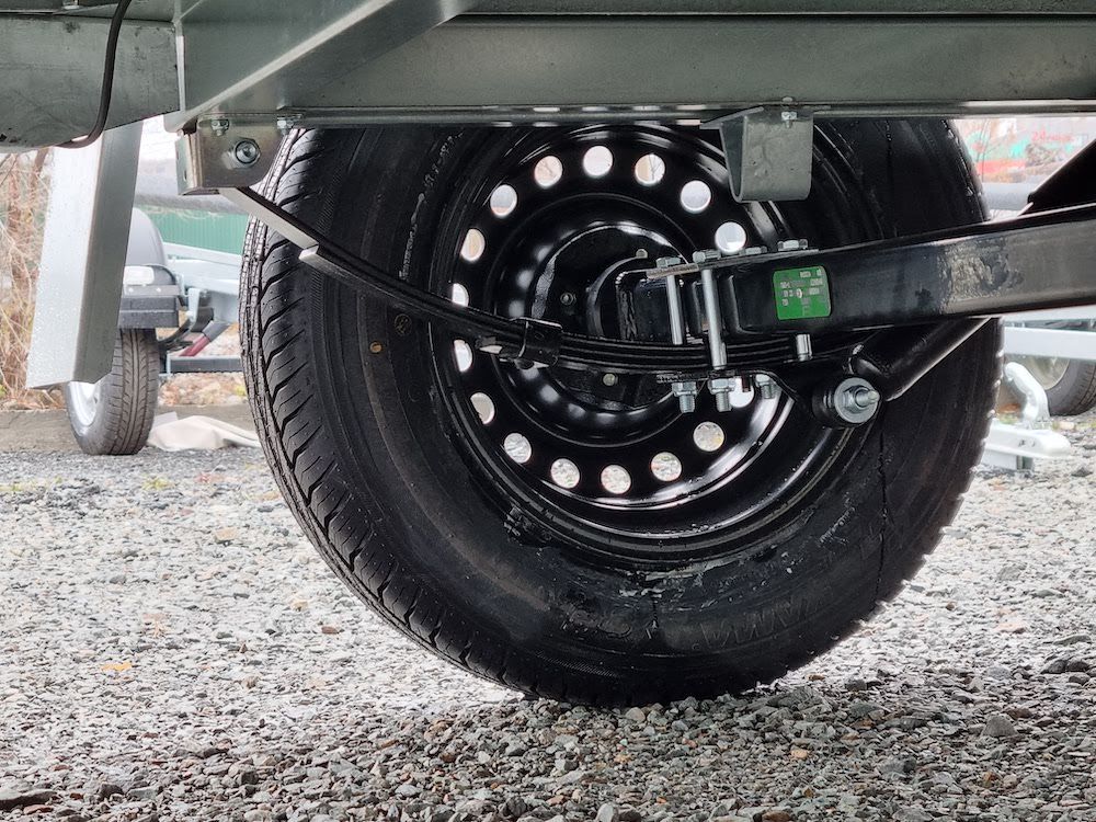 ● Рессорная подвеска (4 рессоры по 3 листа) с гидравлическими амортизаторами сохраняет стабильную плавность хода при разной загруженности прицепа.