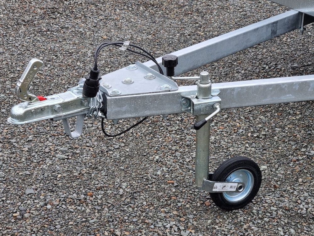 ● Оцинкованное V-образное дышло выдерживает сильные динамические нагрузки. Оно выполнено из замкнутого стального профиля, что повышает его надёжность и позволяет уберечь жгут электропроводки от внешних повреждений.