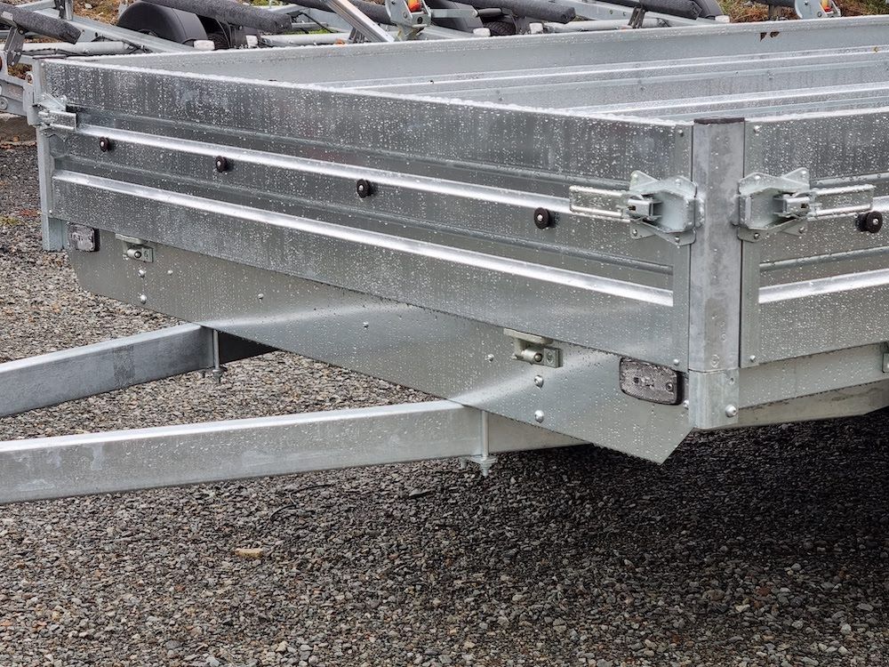 ● Дно прицепа выполнено из многолистовой ламинированной фанеры с противоскользящим покрытием. Устойчиво к износу и воздействию влаги. Боковины дна платформы выполнены из оцинкованной стали и оборудованы петлями крепления груза (6 шт.).