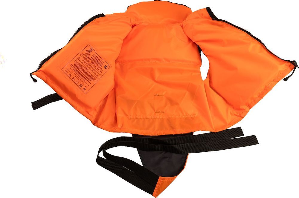 Стропы и качественные пряжки надежно фиксируют спасательный жилет на теле человека. Паховый ремень дает дополнительную гарантию того, что жилет не слетит с тела при падении в воду, если вдруг он плохо затянут стропами в области талии.
