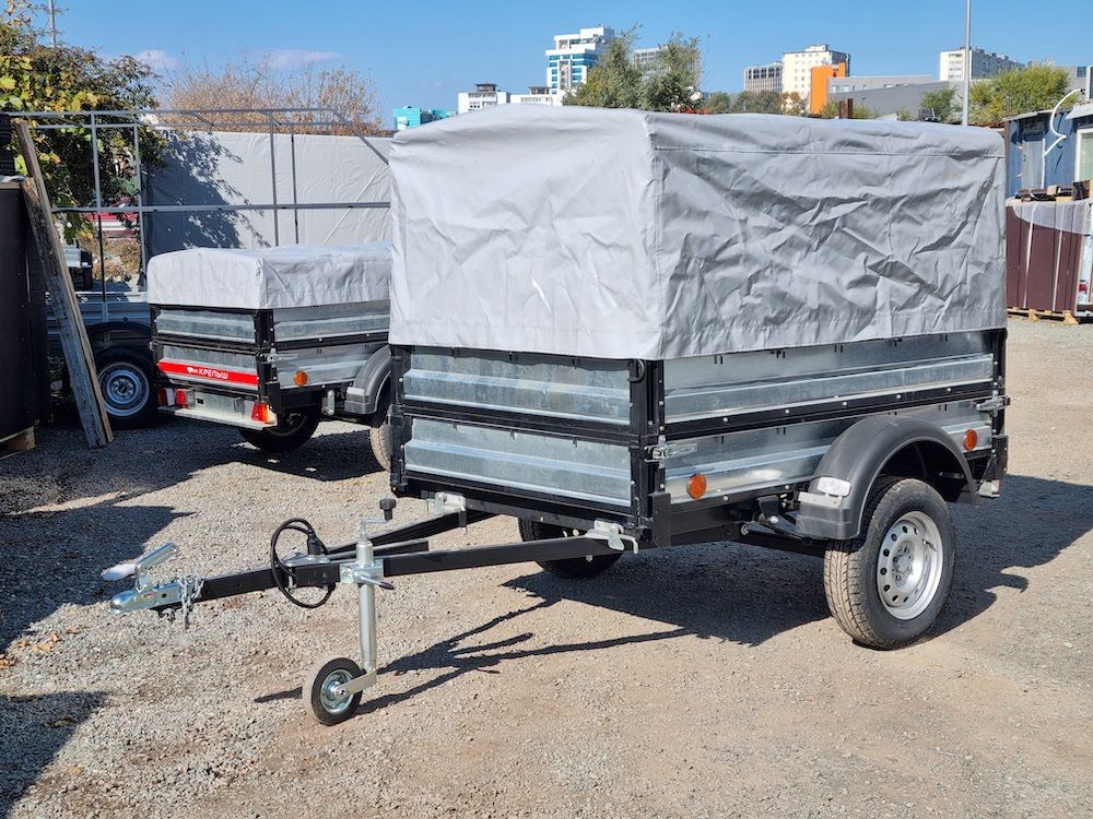 Комплектация: прицеп на колесной базе R13, каркас дуг, тент, опорное колесо.