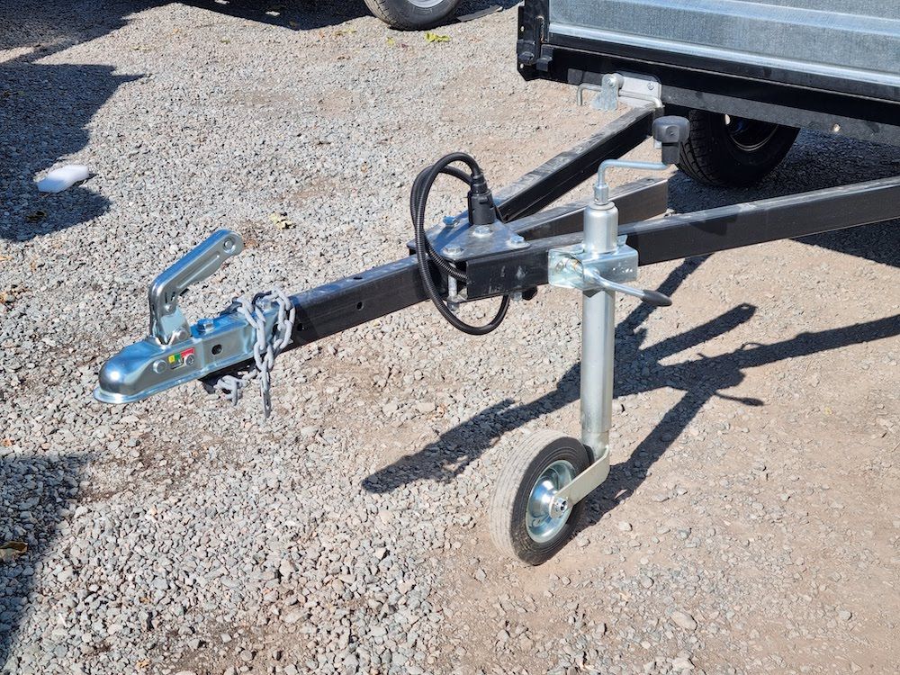 Рама и дышло. В основе прицепа – мощная рама, укрепленная в центре трубчатым элементом, предотвращающим деформацию на скручивание. Дышло прицепа V-образной формы, лучи которого соединены между собой двумя прочными стальными пластинами с установленным удлинителем дышла. Удлинитель может находится в трех положениях: 1,15 м, 1,4 м и 1,8 м от переднего борта. Это позволит использовать прицеп для перевозки длинномерных грузов, выступающих далеко за габариты прицепа.