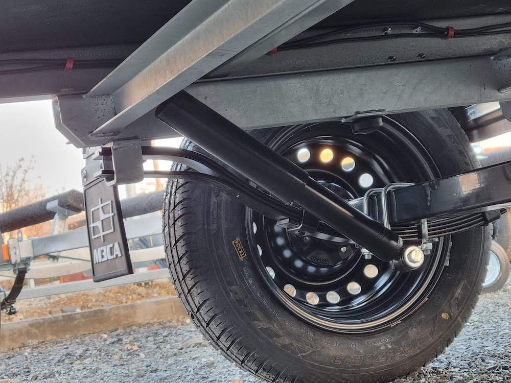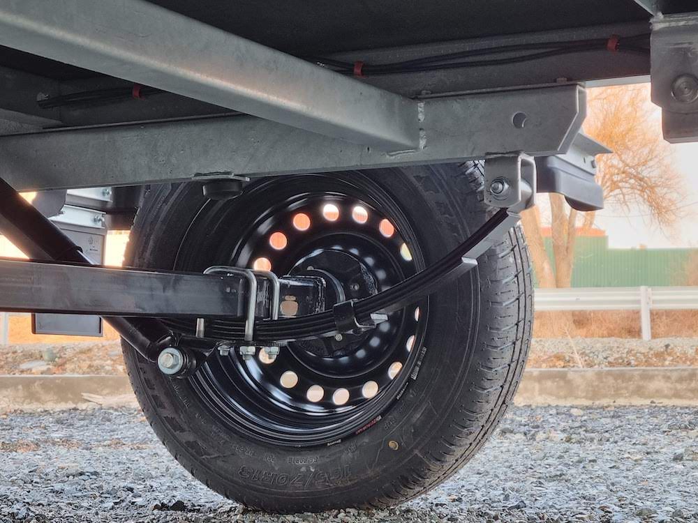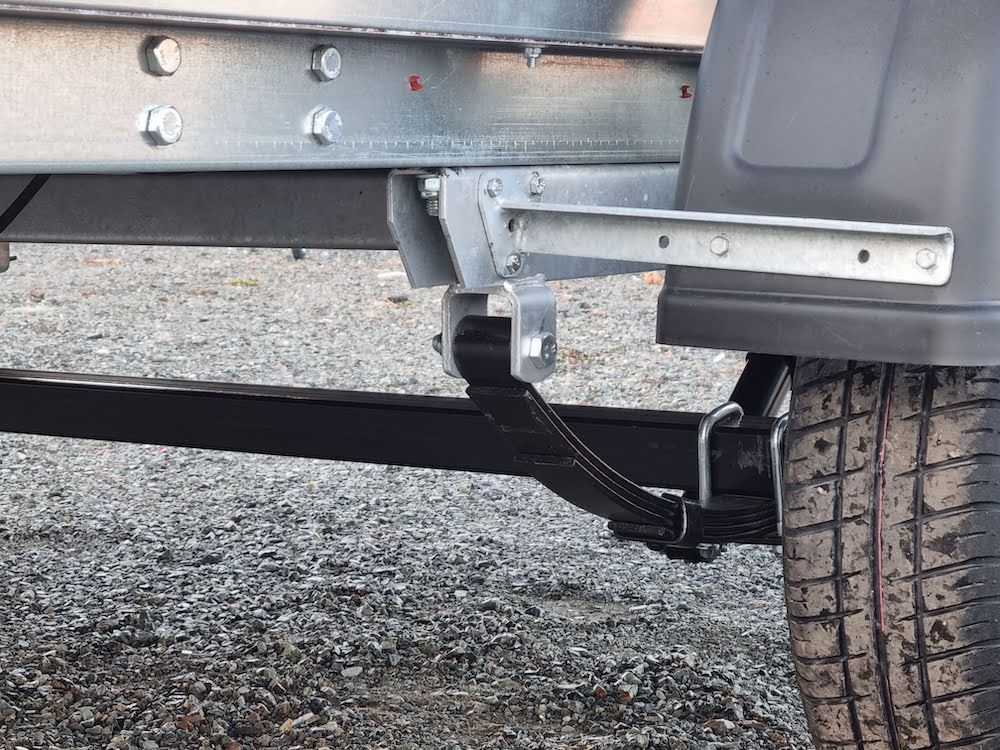 ● Рессорная подвеска (2 рессоры по 4 листа) с гидравлическими амортизаторами сохраняет стабильную плавность хода при разной загруженности прицепа.