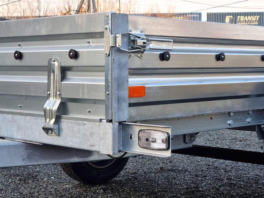 ● Оцинкованные стальные стойки бортов оборудованы петлями крепления груза (4 шт.). Благодаря дополнительным разделительным стойкам повышается жёсткость бортов и их сопротивление излому.