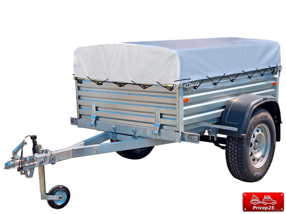 Комплектация: прицеп на колесной базе R16, каркас дуг с тентом, опорное колесо, пакет документов для регистрации в ГИБДД.