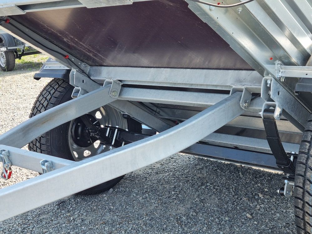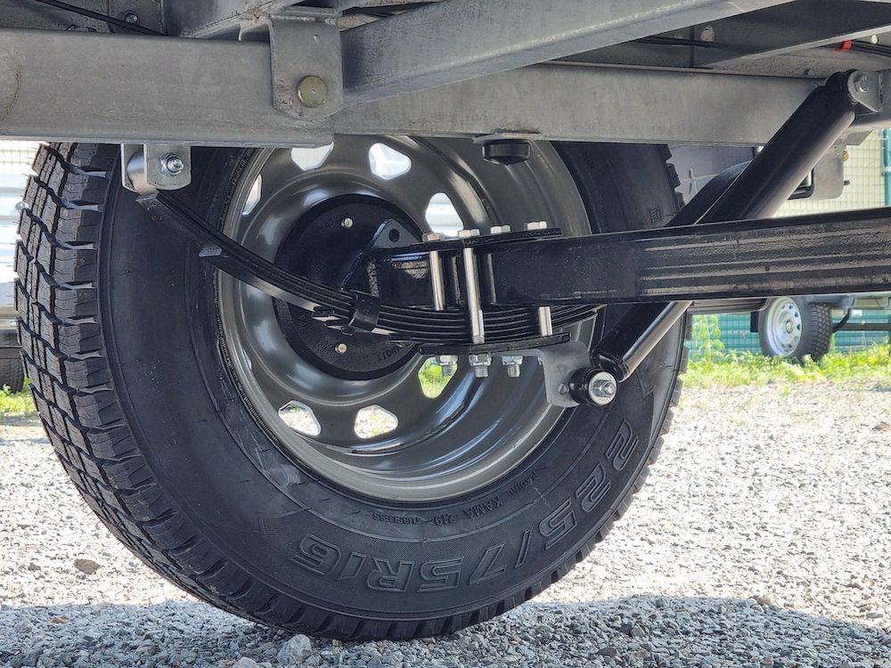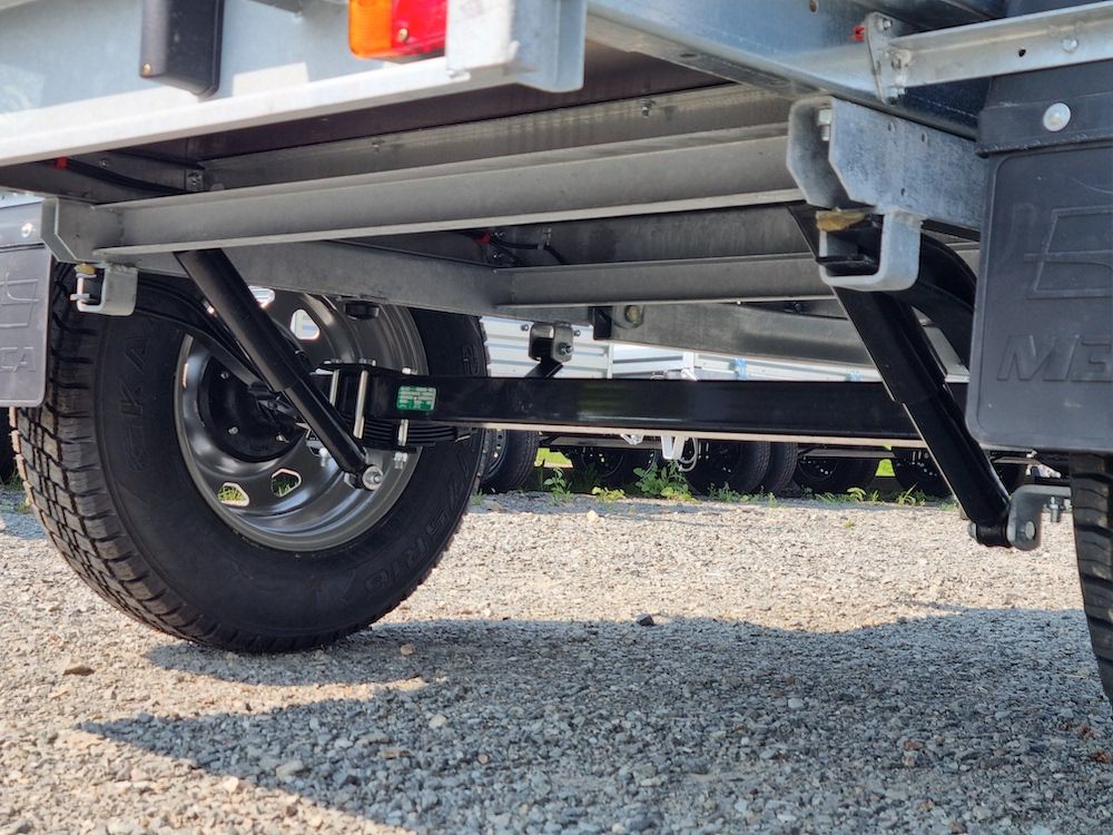 ● Рессорная подвеска (2 рессоры по 5 листов) с гидравлическими амортизаторами сохраняет стабильную плавность хода при разной загруженности прицепа.