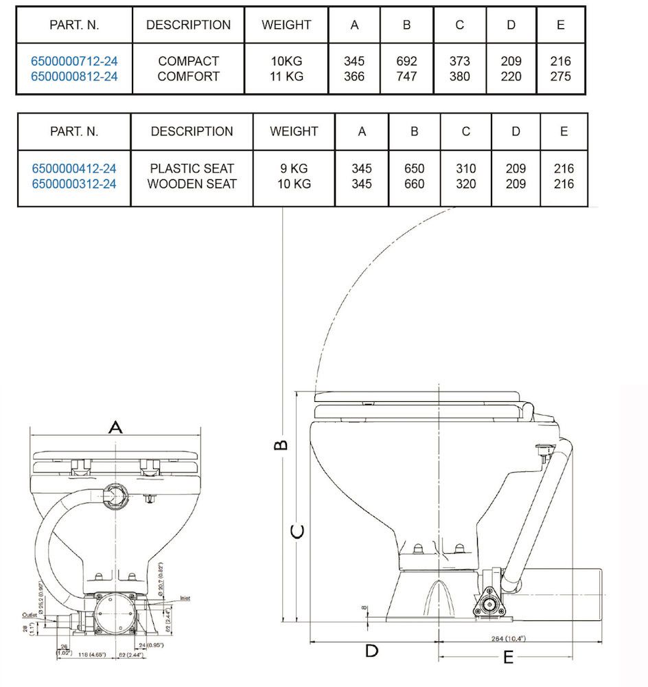 Унитаз с электрической помпой Super COMPACT, 12 В
