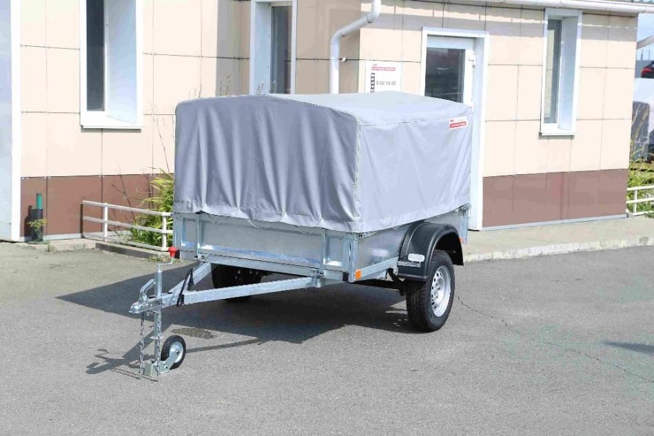 Комплектация: прицеп на колесной базе R13, комплект дуг с тентом, опорное колесо, пакет документов для регистрации в ГИБДД.