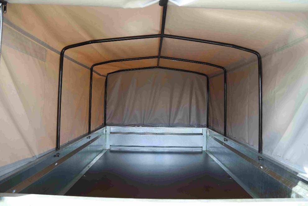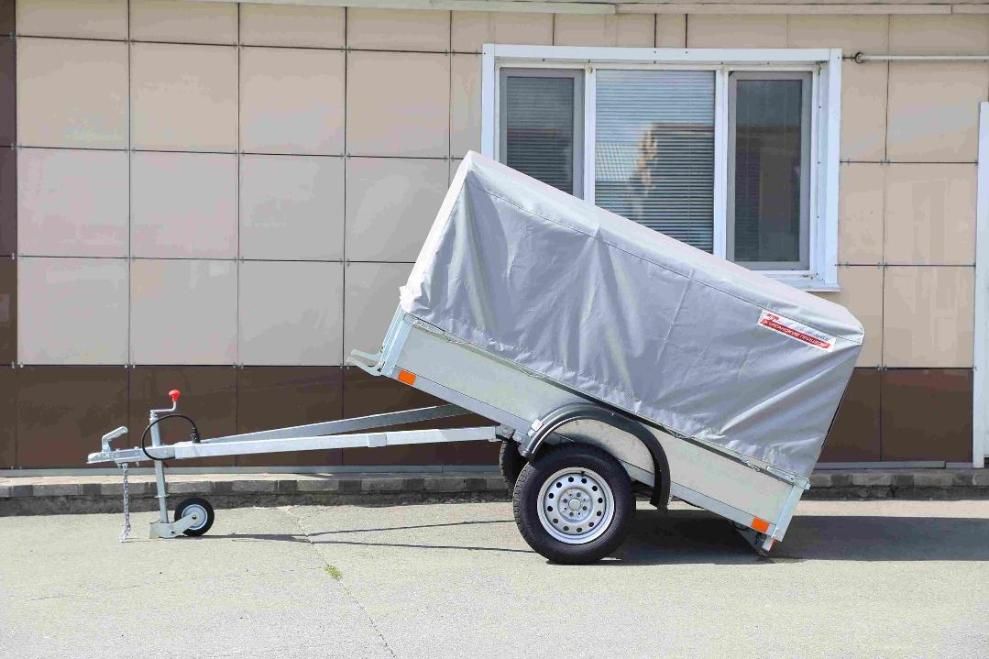 Тент и дуги. Для защиты груза от атмосферных осадков и дорожной грязи на прицеп рекомендуется установить комплект дуг и тент. Два вида тентов разной высоты: 0,25 и 0,75 метра от верхней кромки борта. Высокий тент имеет задний клапан на молнии и липучке (защита замка от грязи). Для удобного доступа внутрь кузова, клапан сворачивается и фиксируется сверху липкой лентой.