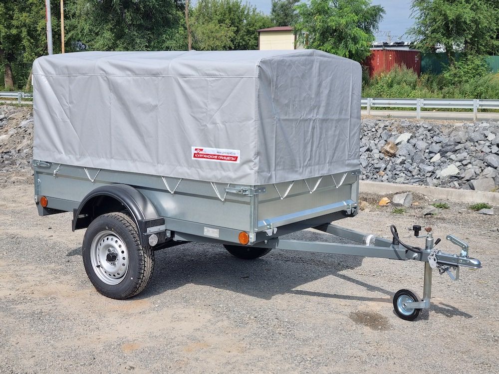 Для защиты груза от атмосферных осадков и дорожной грязи на прицеп можно установить комплект дуг и тенты высотой 0,25 и 0,75 метра от верхней кромки борта прицепа.
