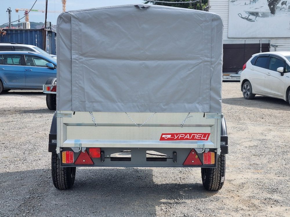 Базовая комплектация прицепа "Уралец": окрашенная рама с дышлом, подвеска рессорно-амортизаторная, представлена 4-листовой рессорой. Колеса ВАЗ 13 дюймов. Днище прицепа выполнено из ламинированной влагостойкой фанеры. Борта оцинкованные, 320 мм. Страховочные цепи. Опорное колесо.