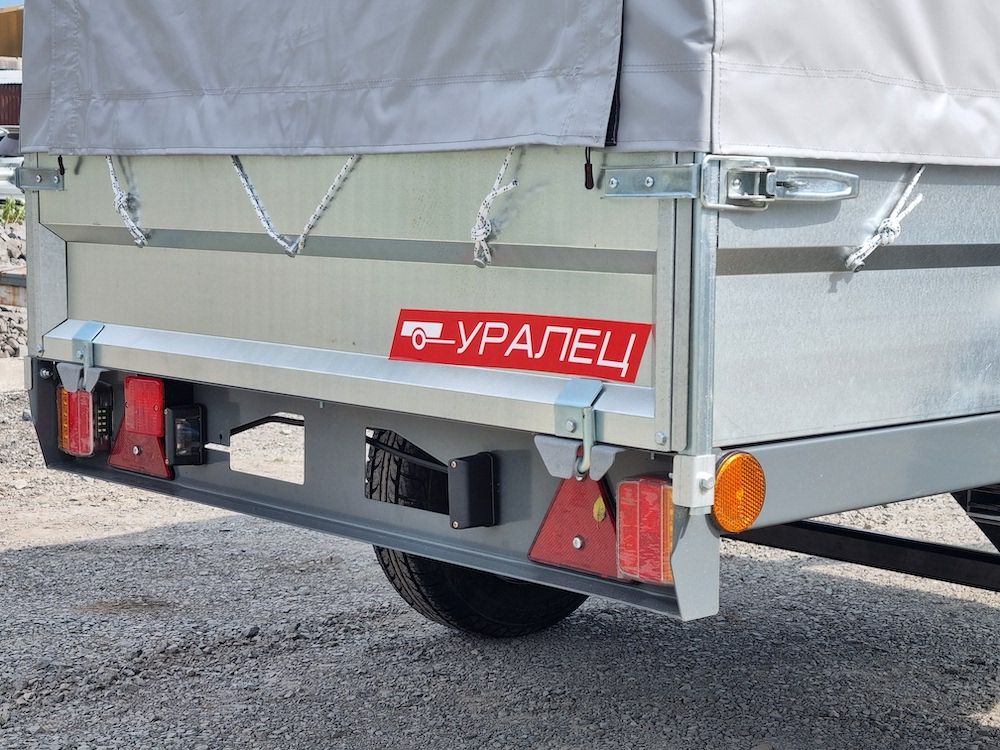 Ходовая часть. Прицеп имеет высокий клиренс. Подвеска «Уральца» имеет простую и надежную конструкцию, которая представлена 4-листовой рессорой. Колебания при движении по неровностям дорожного покрытия гасят гидравлические масляные амортизаторы.