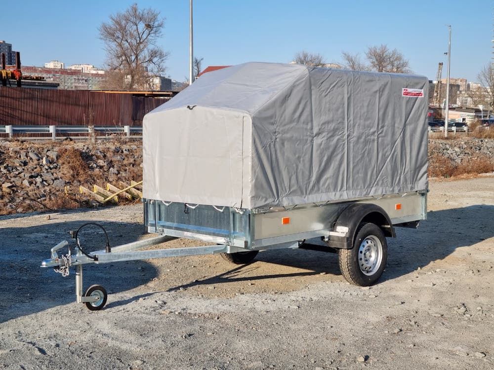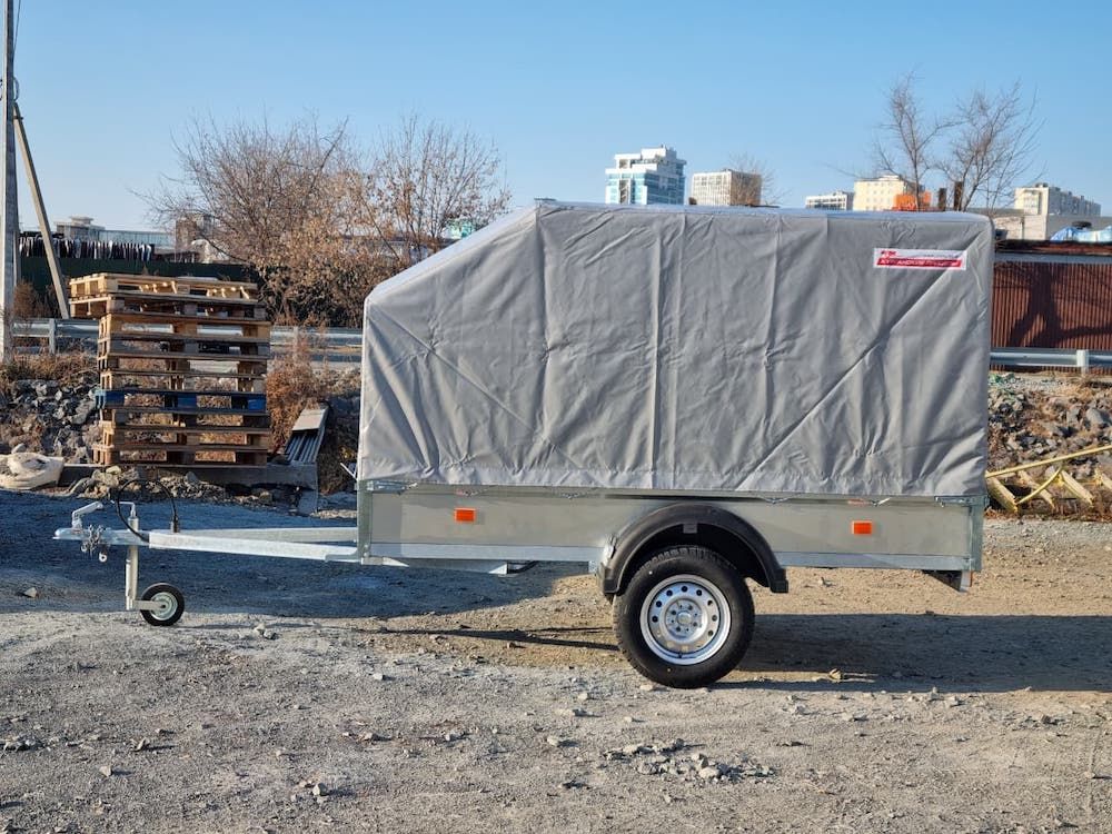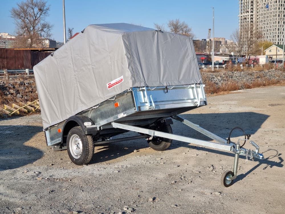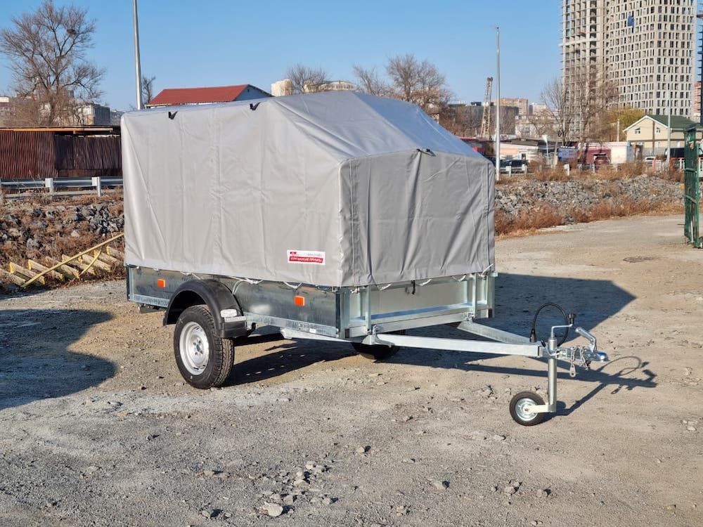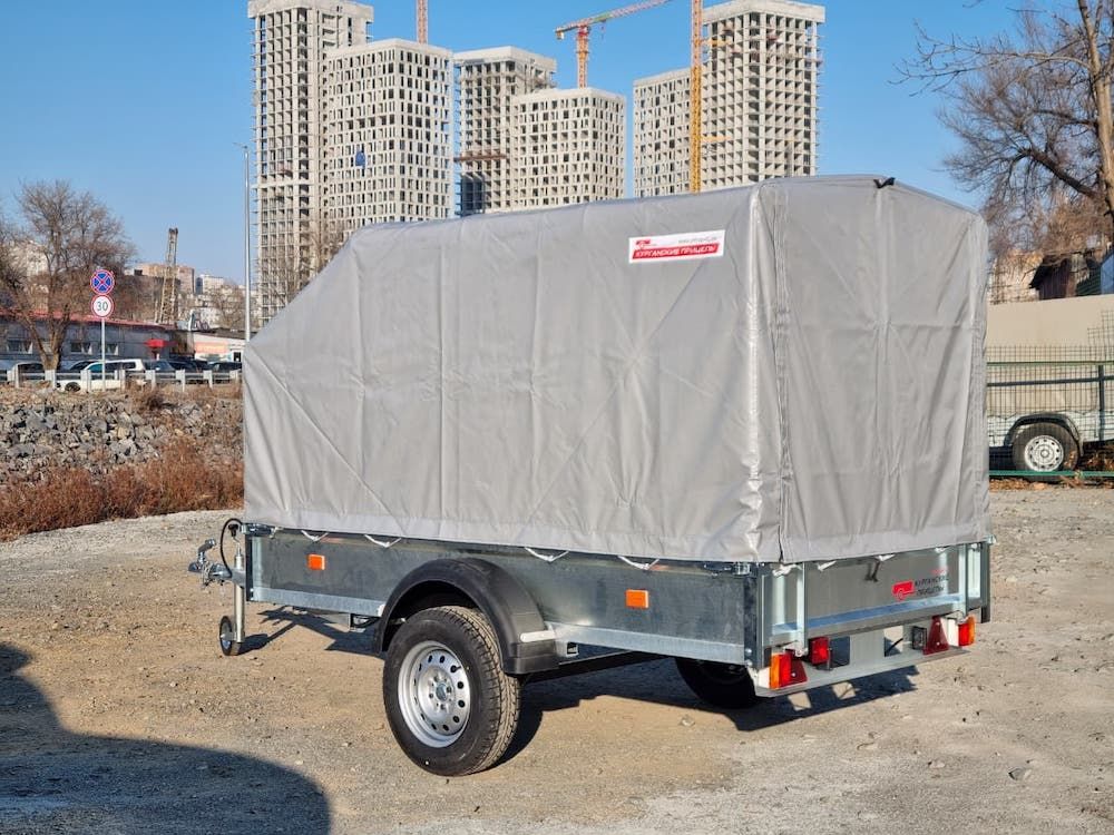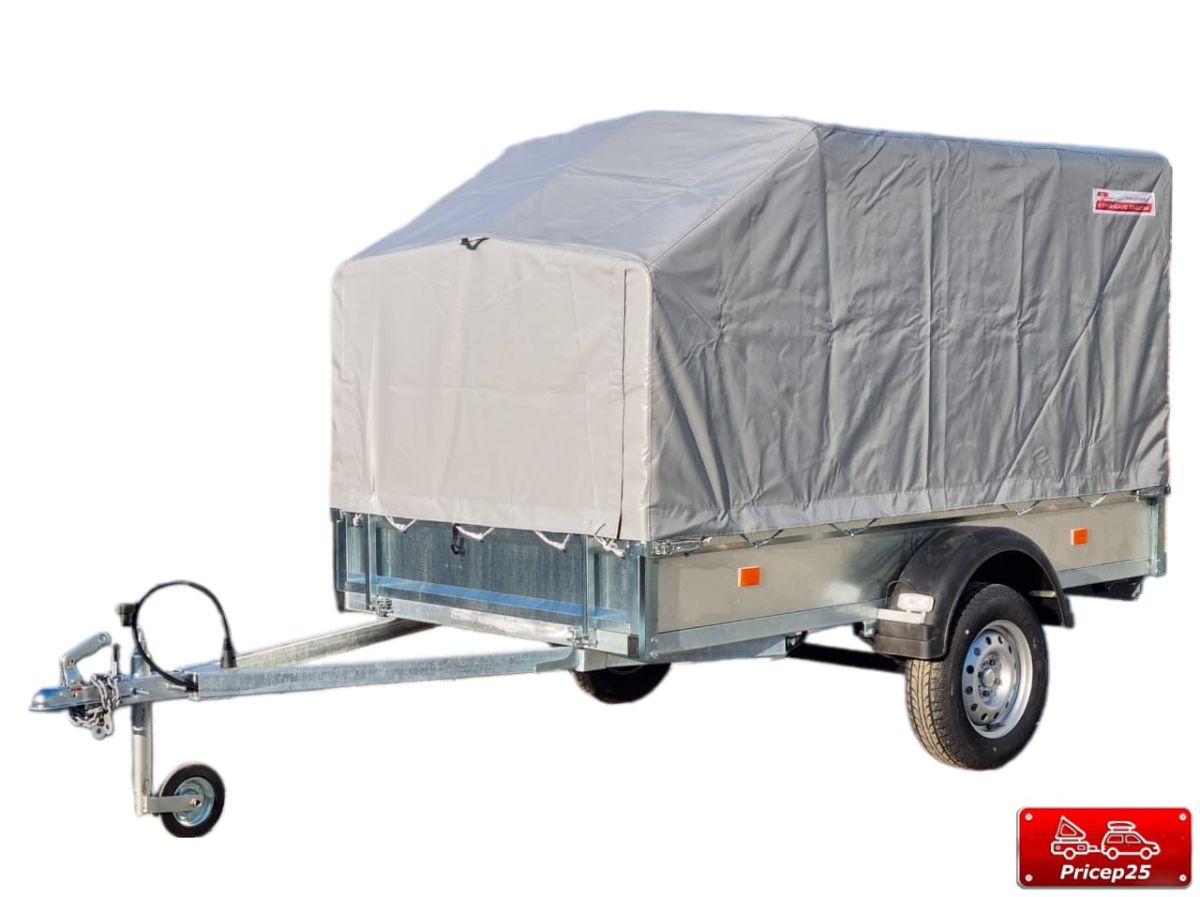Комплектация: прицеп на колесной базе R13, комплект дуг с тентом, опорное колесо, пакет документов для регистрации в ГИБДД.